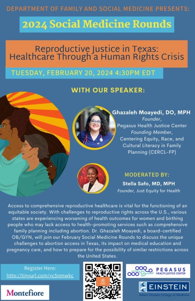 Access to comprehensive reproductive healthcare is vital for the functioning of an equitable society. With challenges to reproductive rights across the US, various states are experiencing worsening of health outcomes for women and birthing people who may lack access to health-promoting services such as comprehensive family planning including abortion. Dr. Ghazaleh Moayedi, a board-certified OB/GYN, joined our February Social Medicine Rounds to discuss the unique challenges to abortion access in Texas, its impact on medical education and pregnancy care, and how to prepare for the possibility of similar restrictions across the U.S.