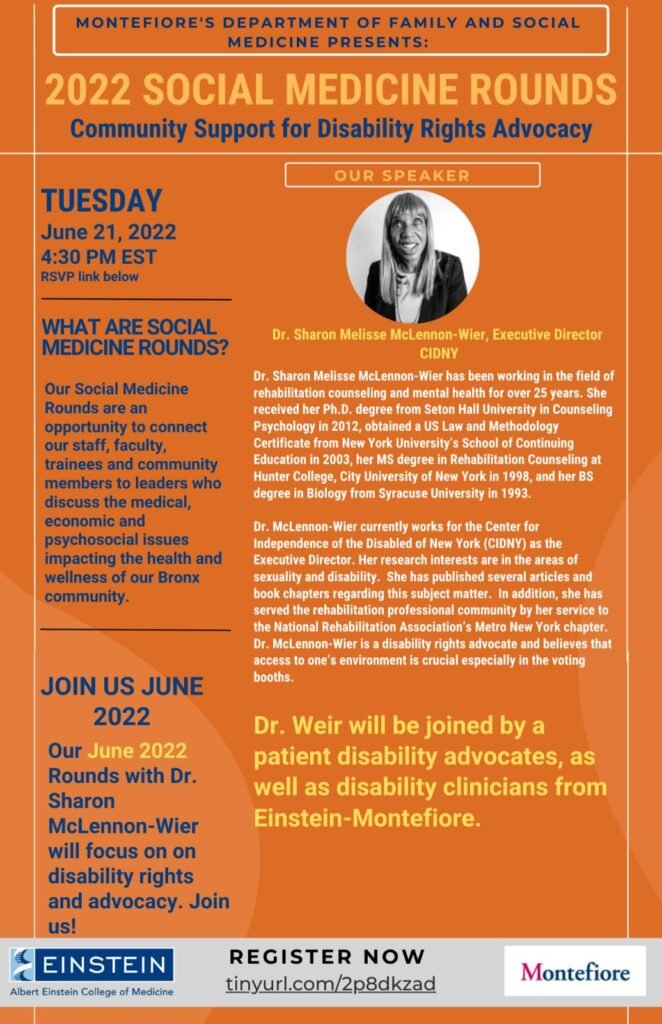 Our June Social Medicine Rounds covered how Bronx physicians and residents can join in effective advocacy for disability rights.