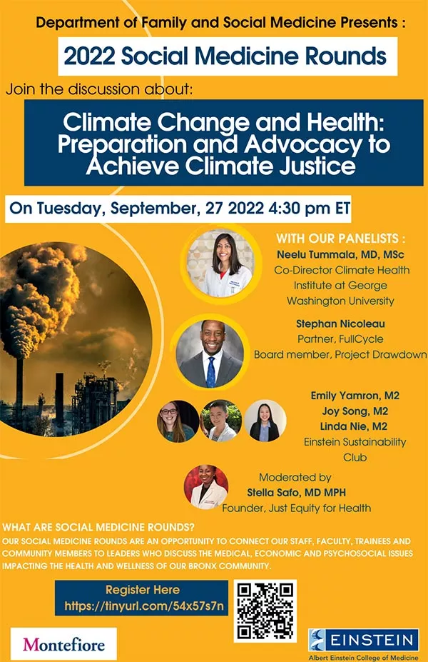 Our September Social Medicine Rounds covered “Climate Change and Health: Preparation and Advocacy to Achieve Climate Justice”